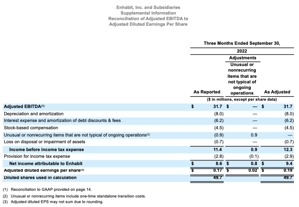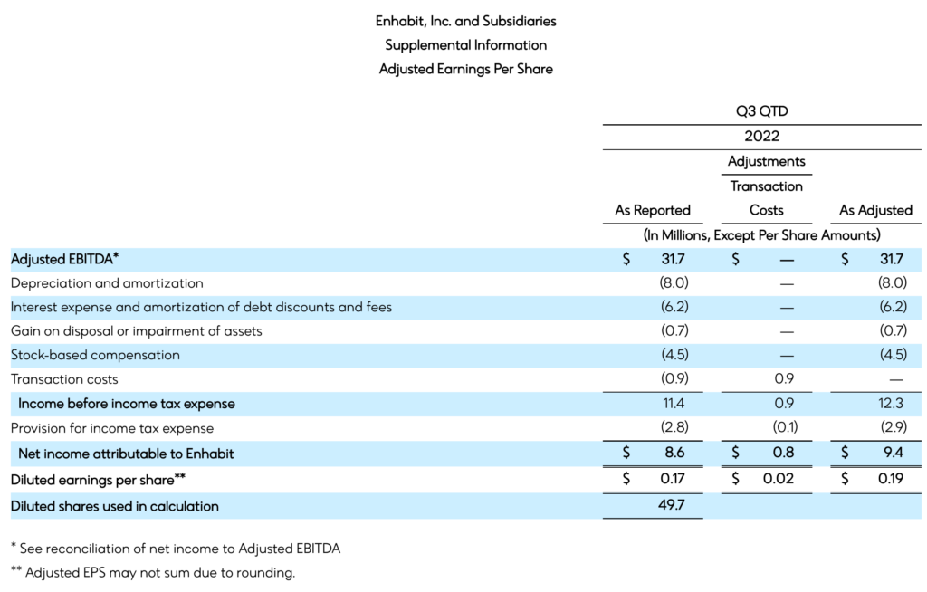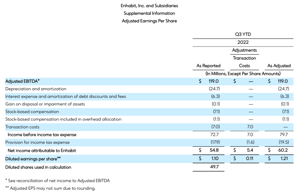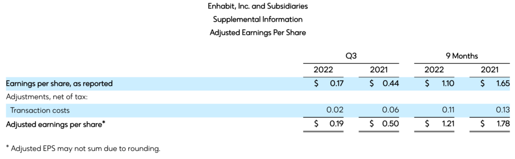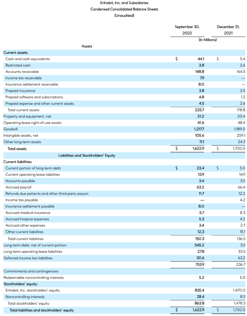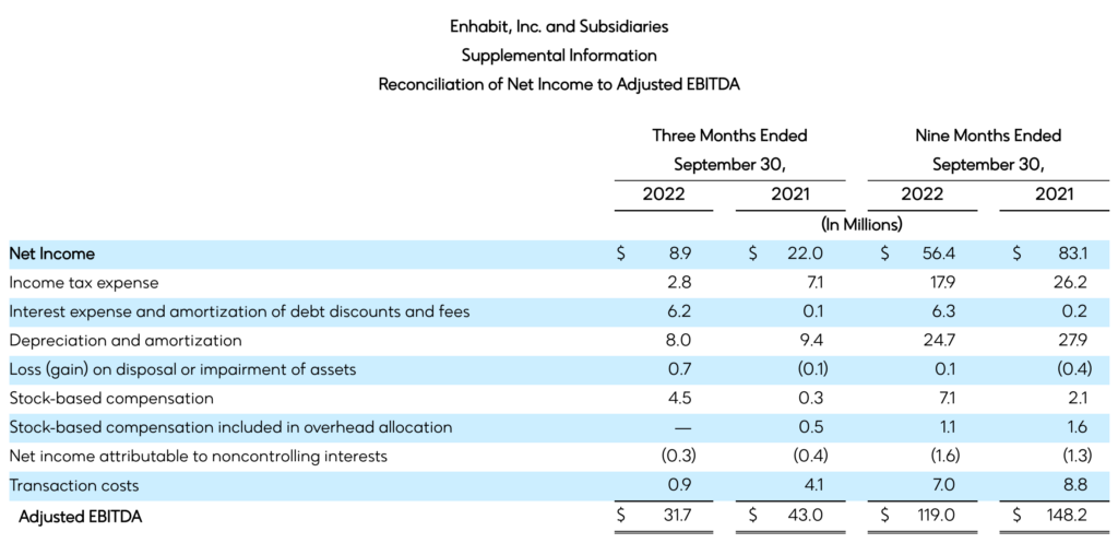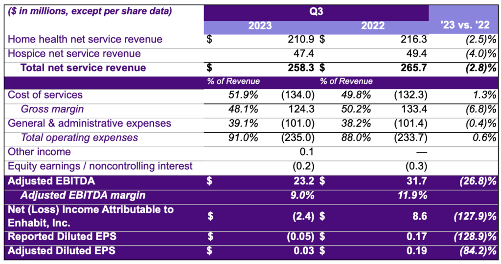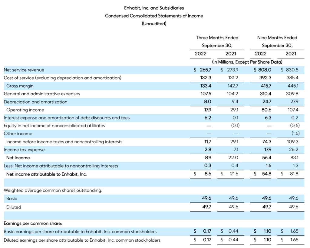 DALLAS–(BUSINESS WIRE)– Enhabit, Inc. (NYSE: EHAB), a leading home health and hospice care provider, today reported its results of operations for the third quarter ended September 30, 2022.
