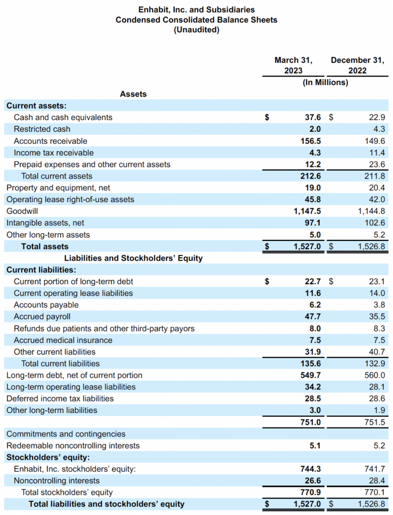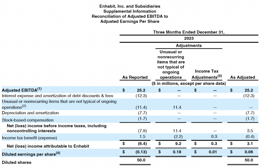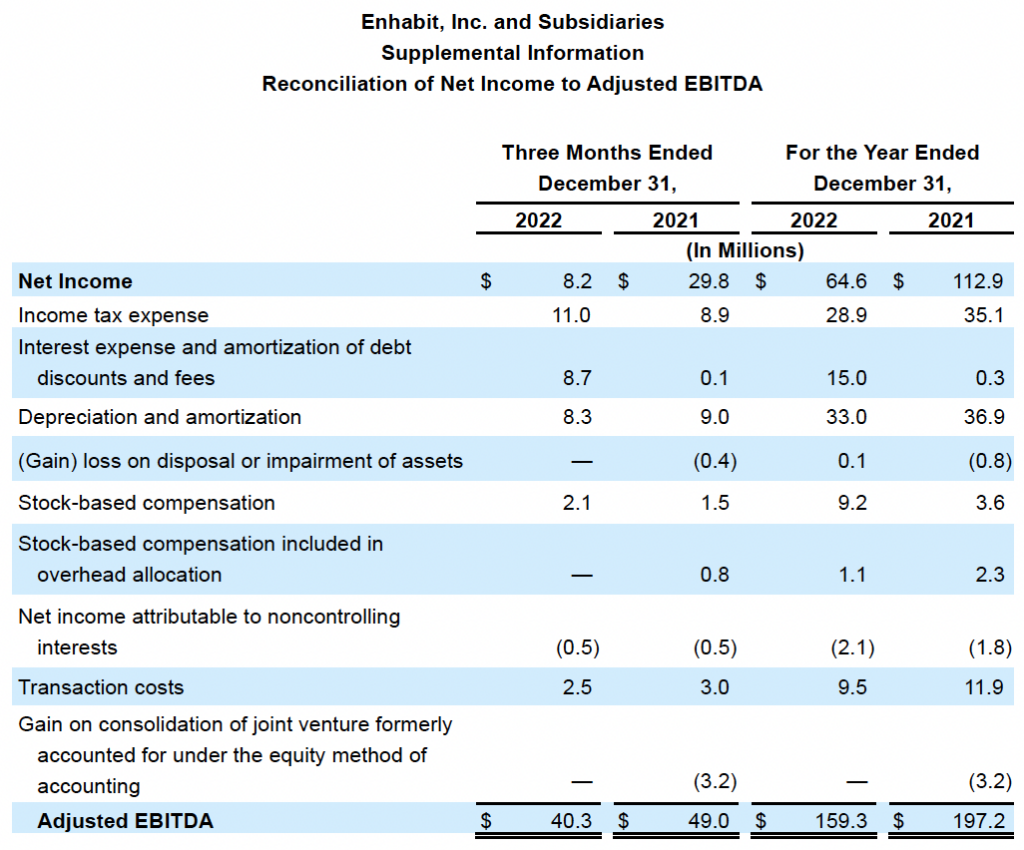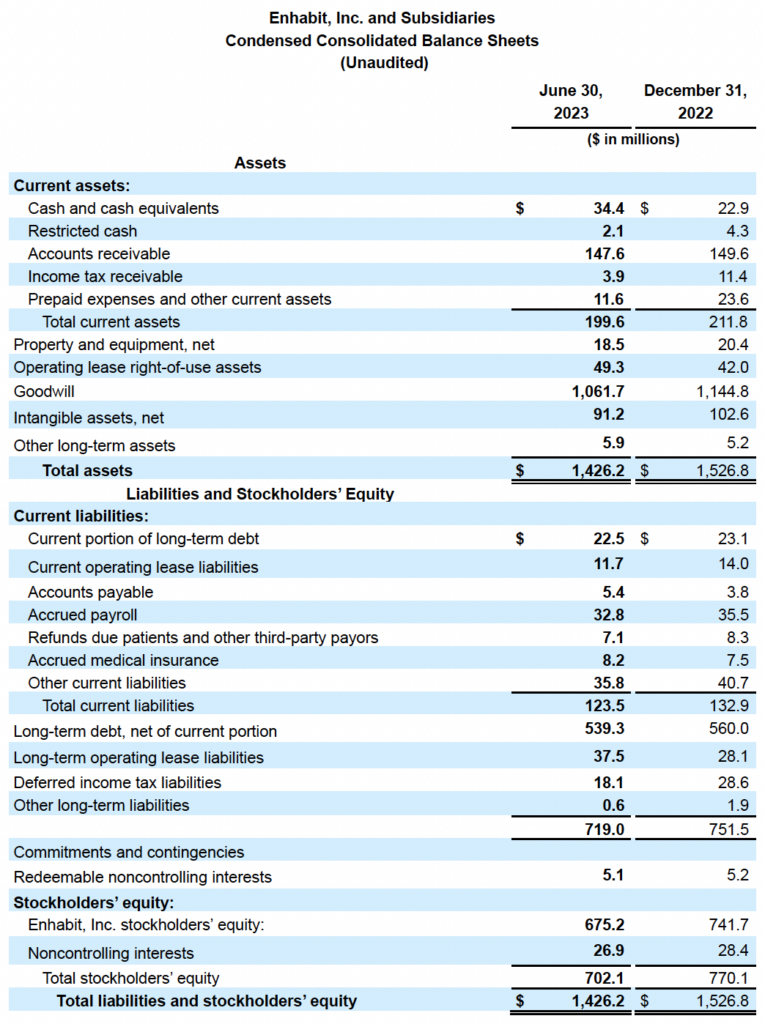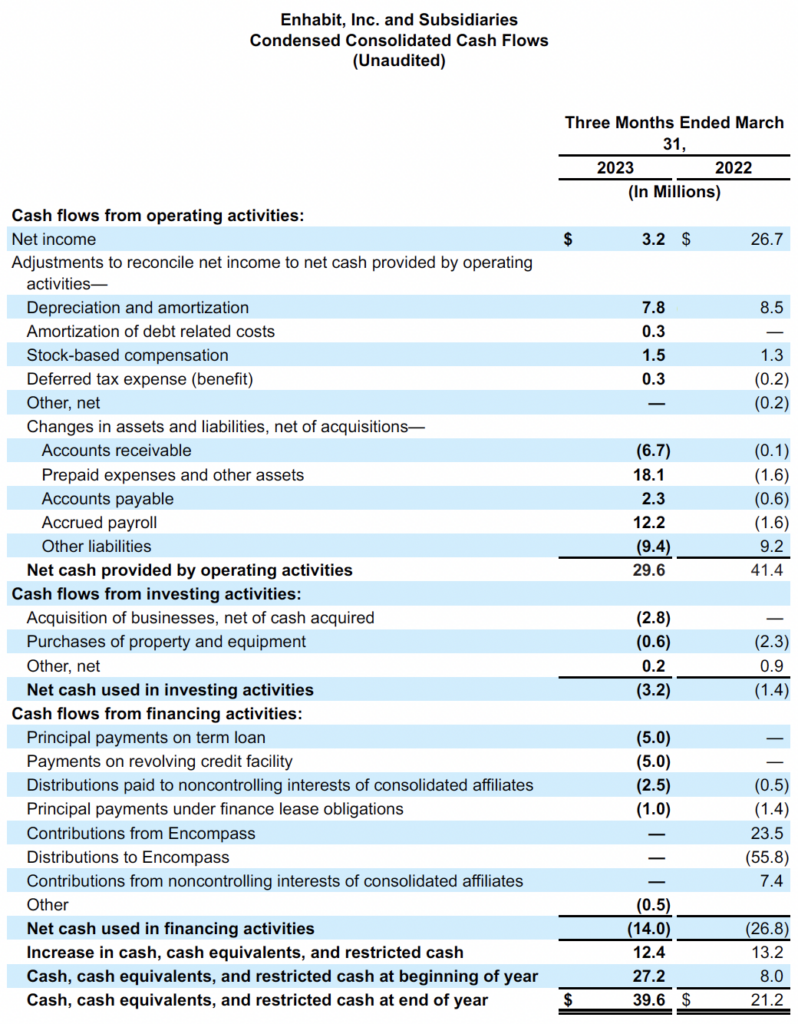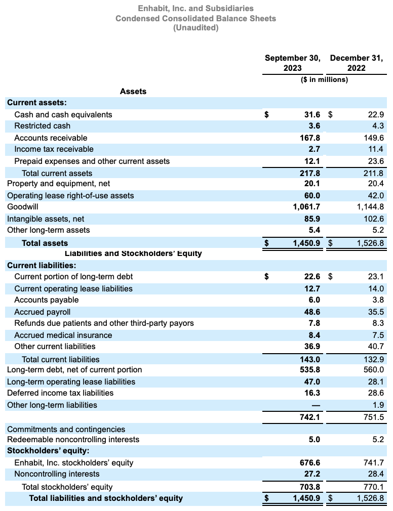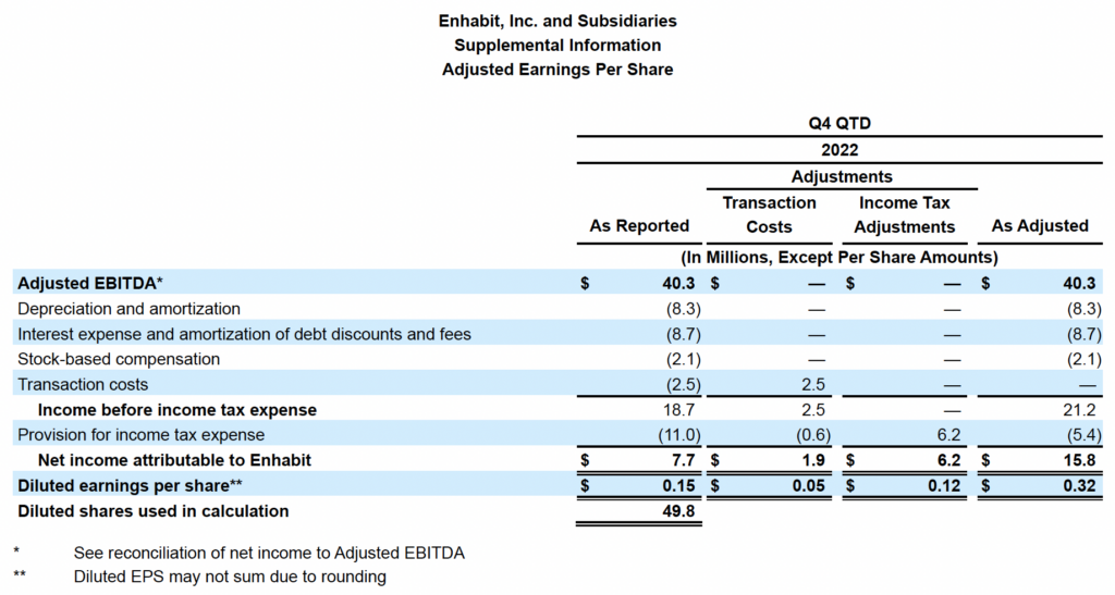 • Net income attributable to Enhabit, Inc. of $0.2 million