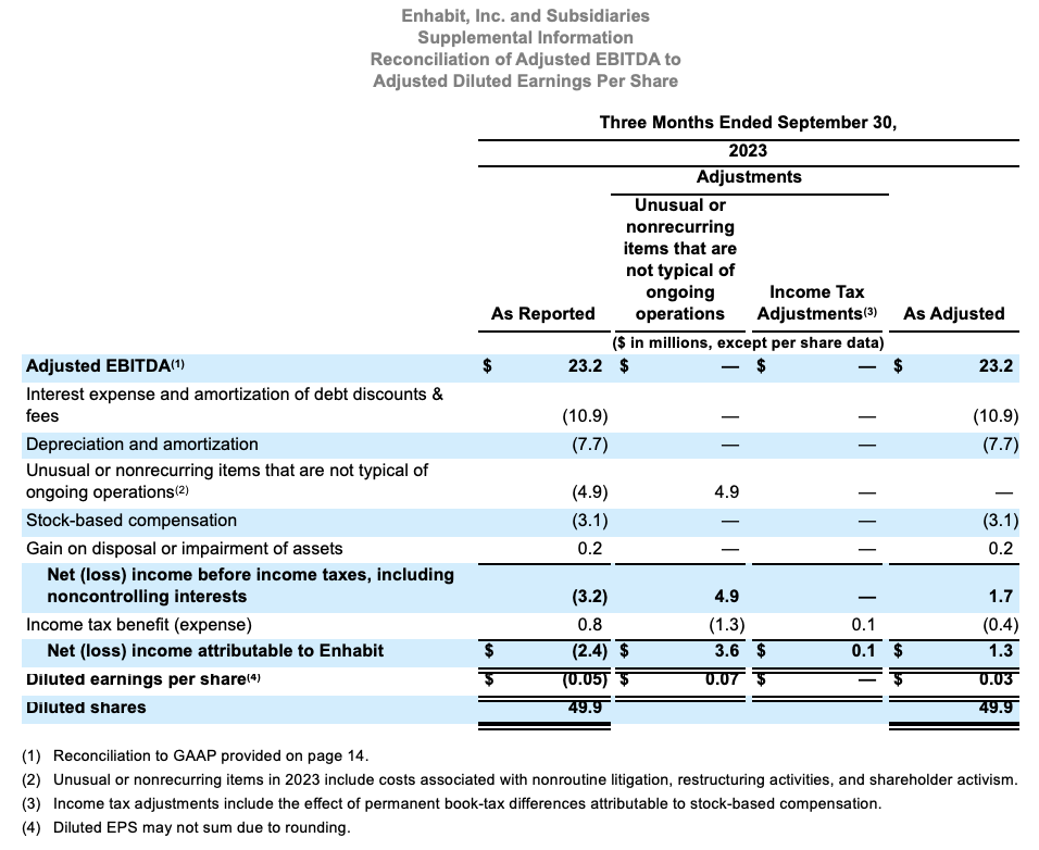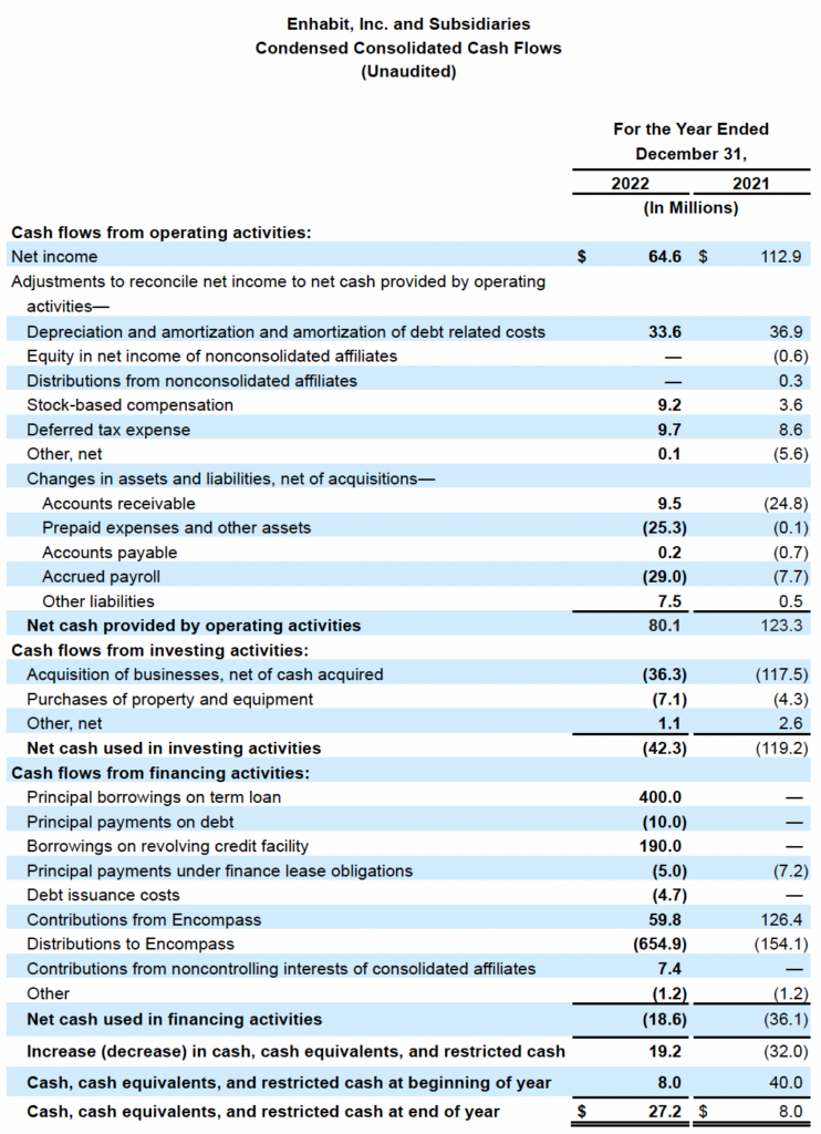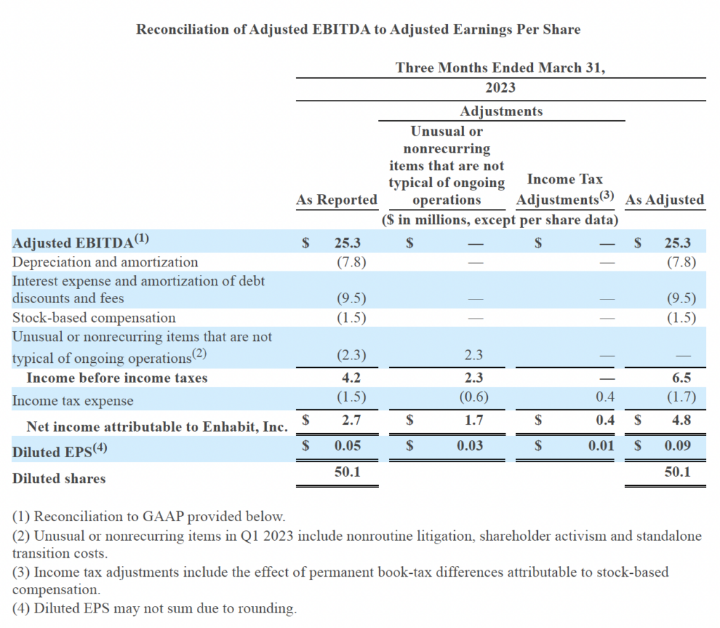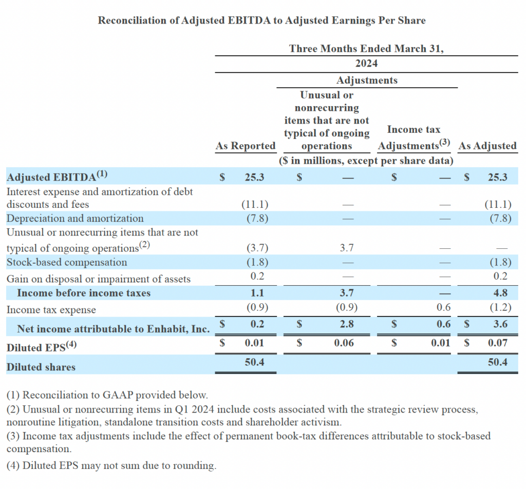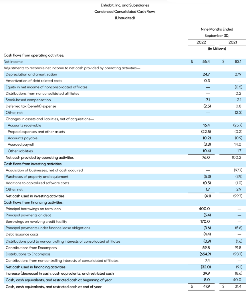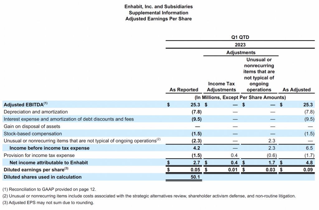 • Net income attributable to Enhabit, Inc. of $0.2 million