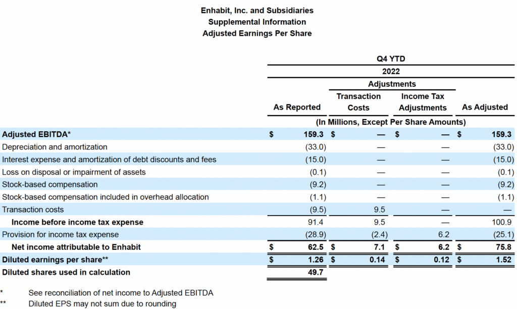 For additional considerations regarding the Company’s 2022 guidance ranges, see the supplemental information posted on the Company’s website at http://investors.ehab.com. See also “Other Information” below for an explanation of why the Company does not provide guidance for comparable GAAP measures for Adjusted EBITDA and Adjusted EPS.