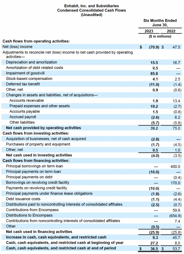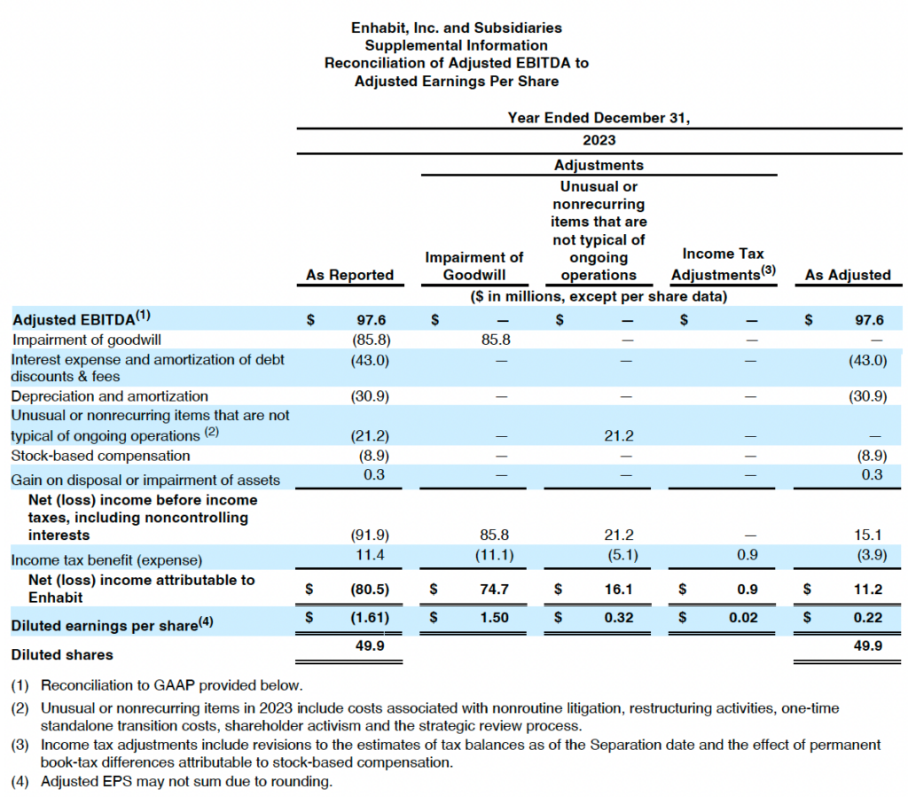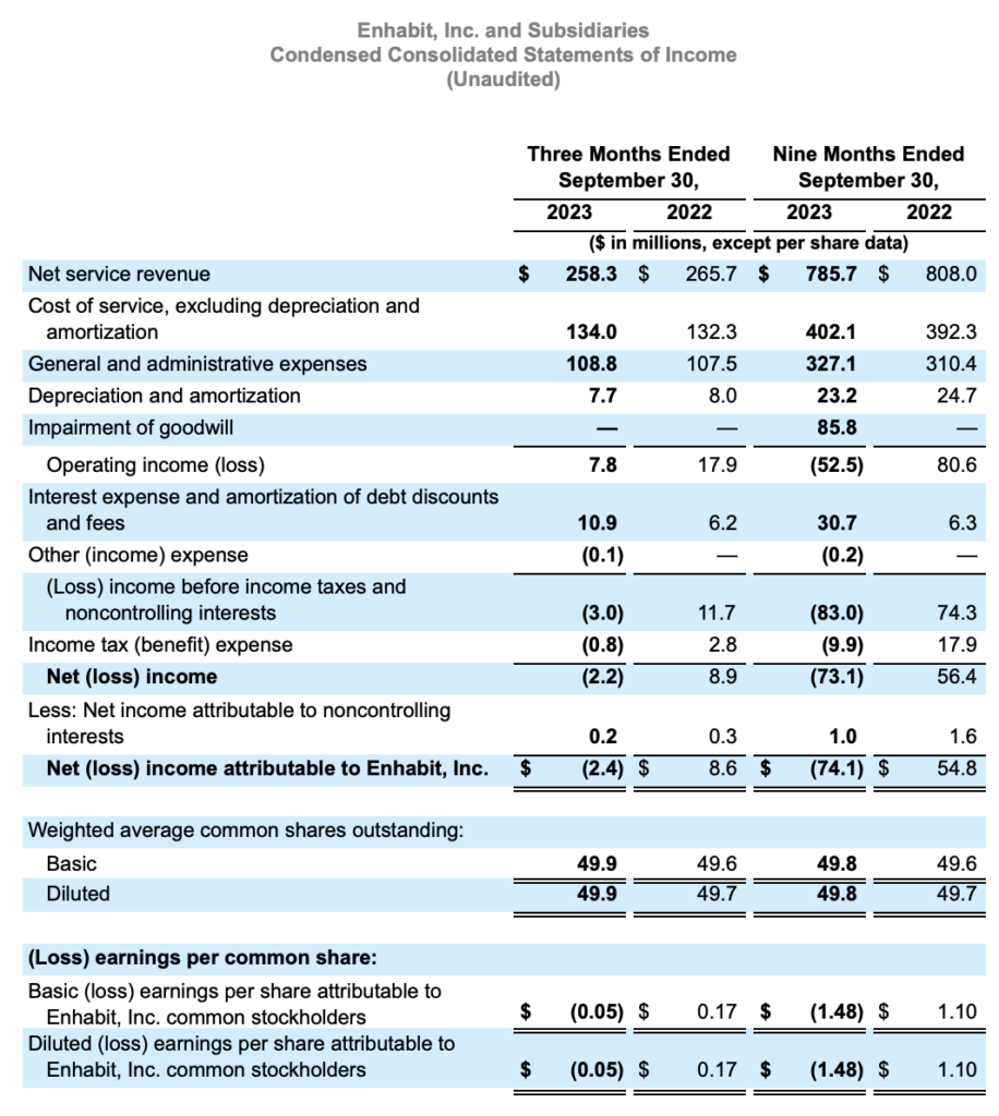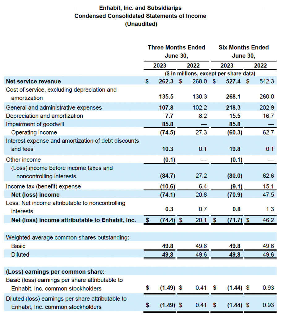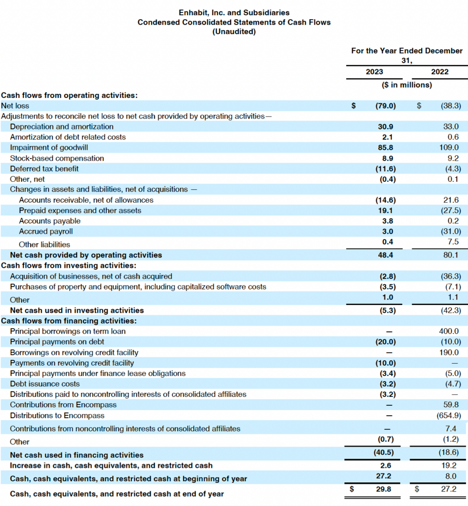 • Net loss attributable to Enhabit, Inc. of $6.4 million