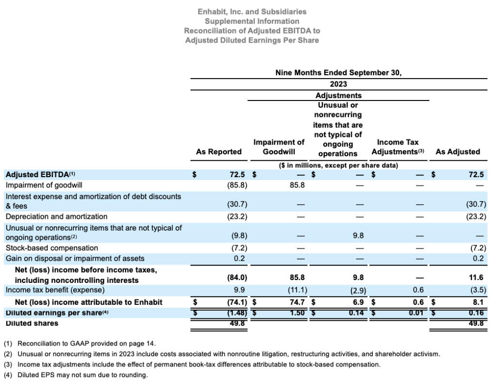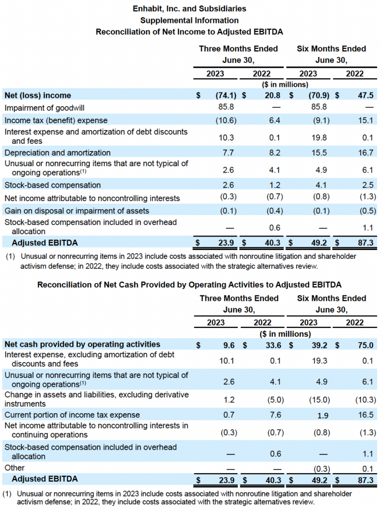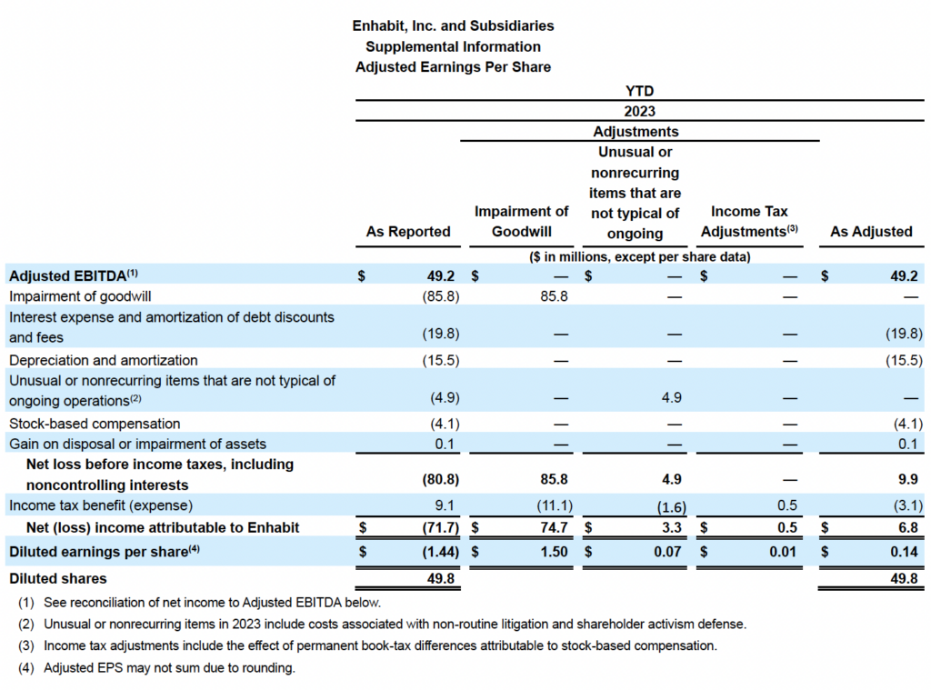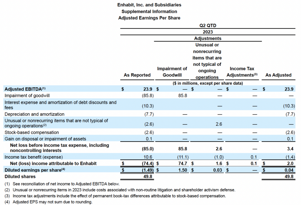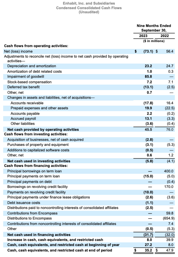 • Net loss attributable to Enhabit, Inc. of $6.4 million