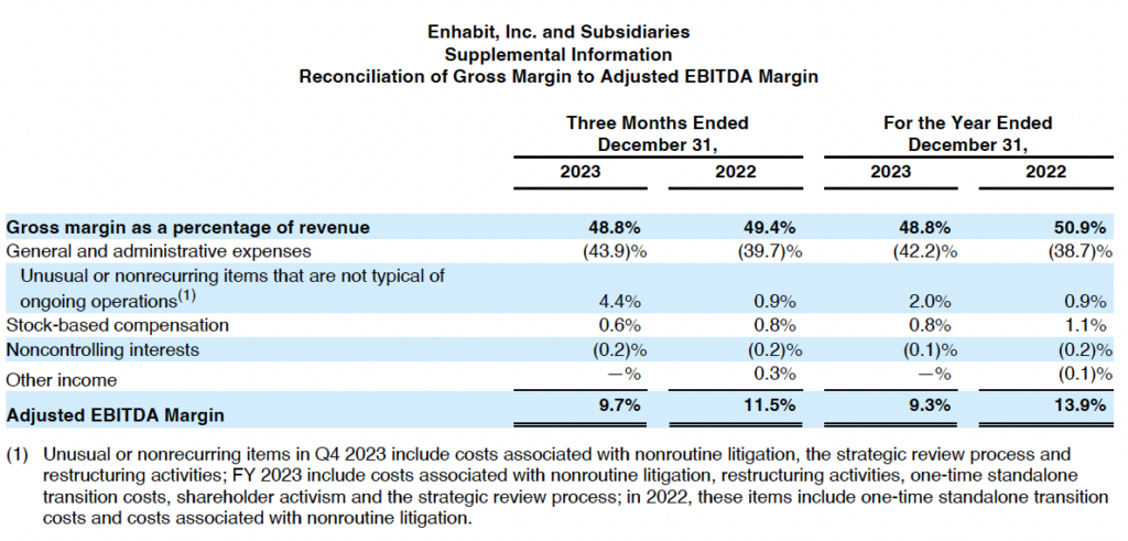 The Board and management team remain focused on the Company’s financial and operating results. “With the strategic alternatives review process concluded, the management team is focused on operating Enhabit’s core businesses,” said President and Chief Executive Officer Barbara Jacobsmeyer. “Our momentum exiting 2023 and through the first quarter of 2024, in which we hired additional frontline clinicians, negotiated more and better home health payor contracts, and controlled G&A expenses, instills excitement in our strategy and team, and we are confident we are taking the right steps to drive future growth to increase shareholder value.”