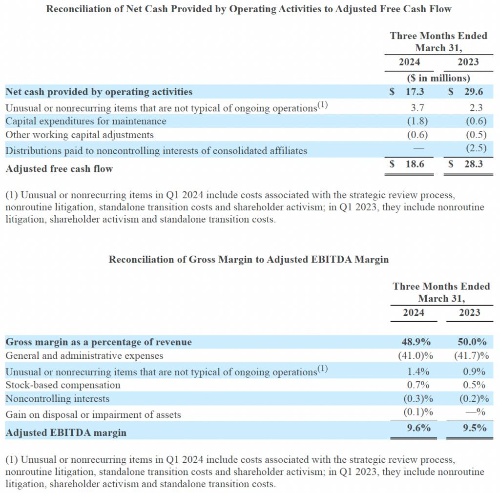 The financial data contained in this press release and supplemental information includes non-GAAP (generally accepted accounting principles (GAAP)) financial measures as defined in Regulation G under the Securities Exchange Act of 1934, including Adjusted EBITDA, Adjusted EBITDA margin, Adjusted EPS, and Adjusted free cash flow. See “Reconciliations of Non-GAAP Financial Measures” for reconciliations of the non-GAAP financial measures to the most directly comparable financial measures calculated and presented in accordance with GAAP. Additionally, our Form 10-Q for the three months ended March 31, 2024, provide further information regarding “unusual or nonrecurring items that are not typical of ongoing operations,” are conciliation item in our Adjusted EBITDA calculation. Such non-GAAP financial measures exclude significant components in understanding and assessing financial performance and should therefore not be considered superior to, as a substitute for or alternative to the GAAP financial measures presented in this press release. Thenon-GAAP financial measures in the press release may differ from similar measures used by other companies.